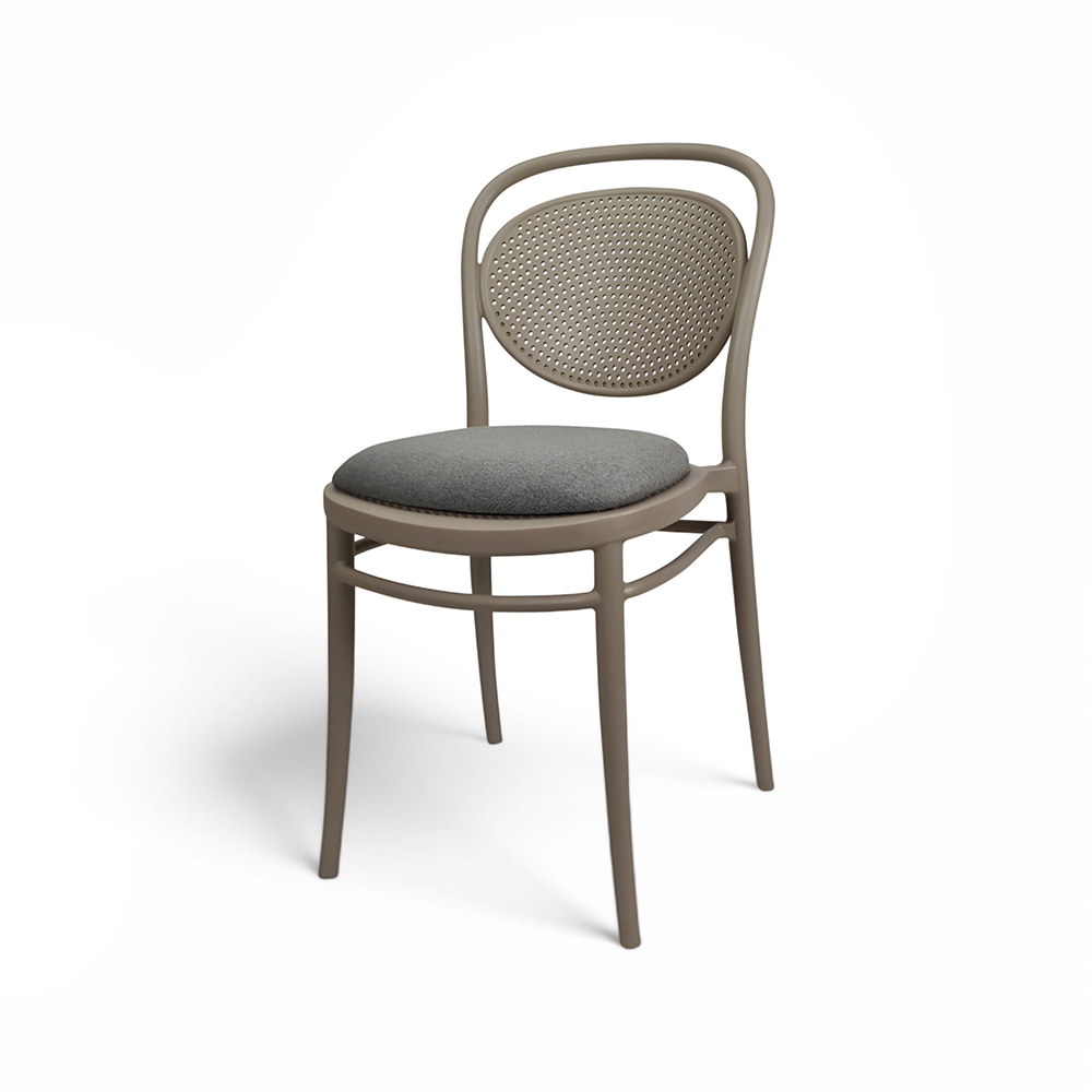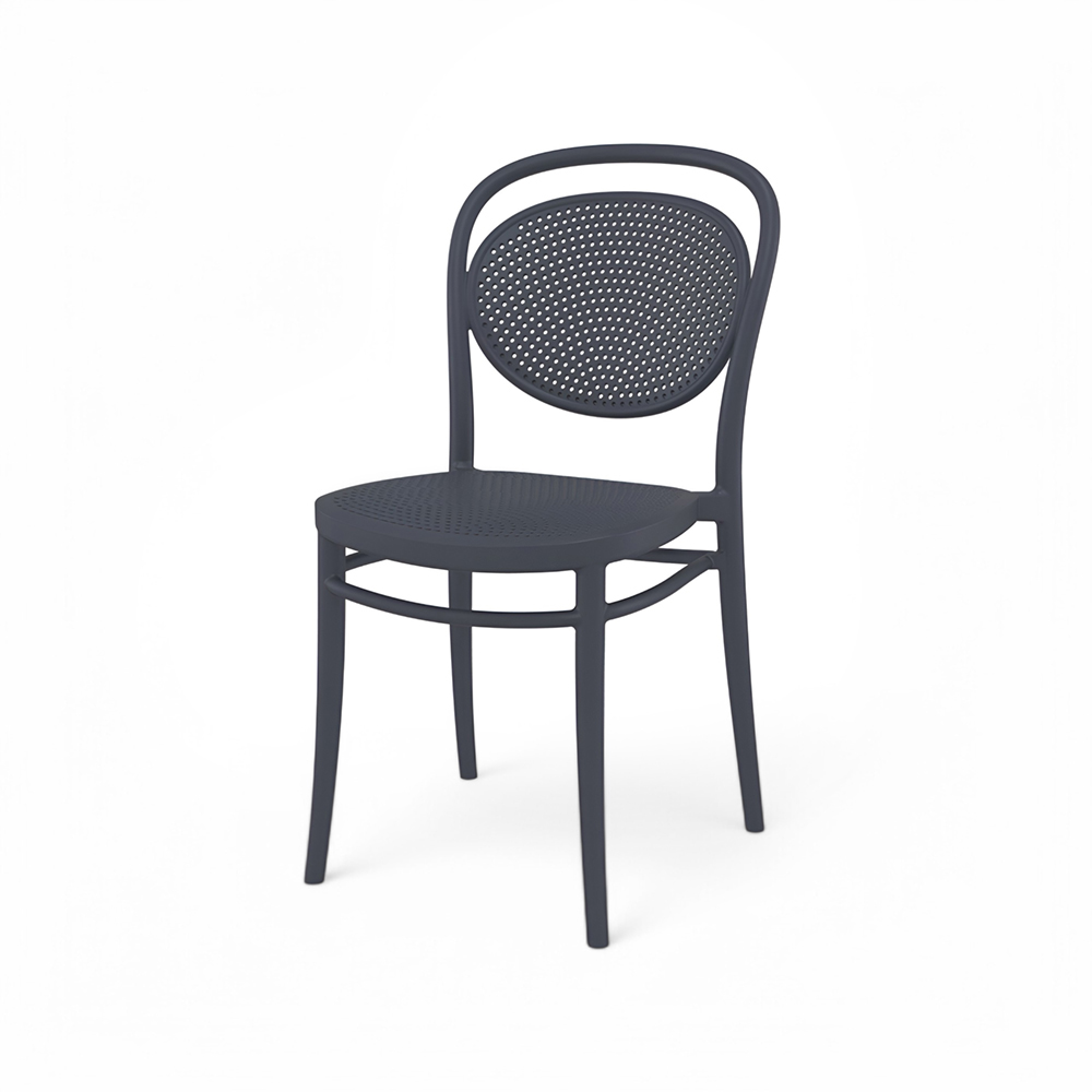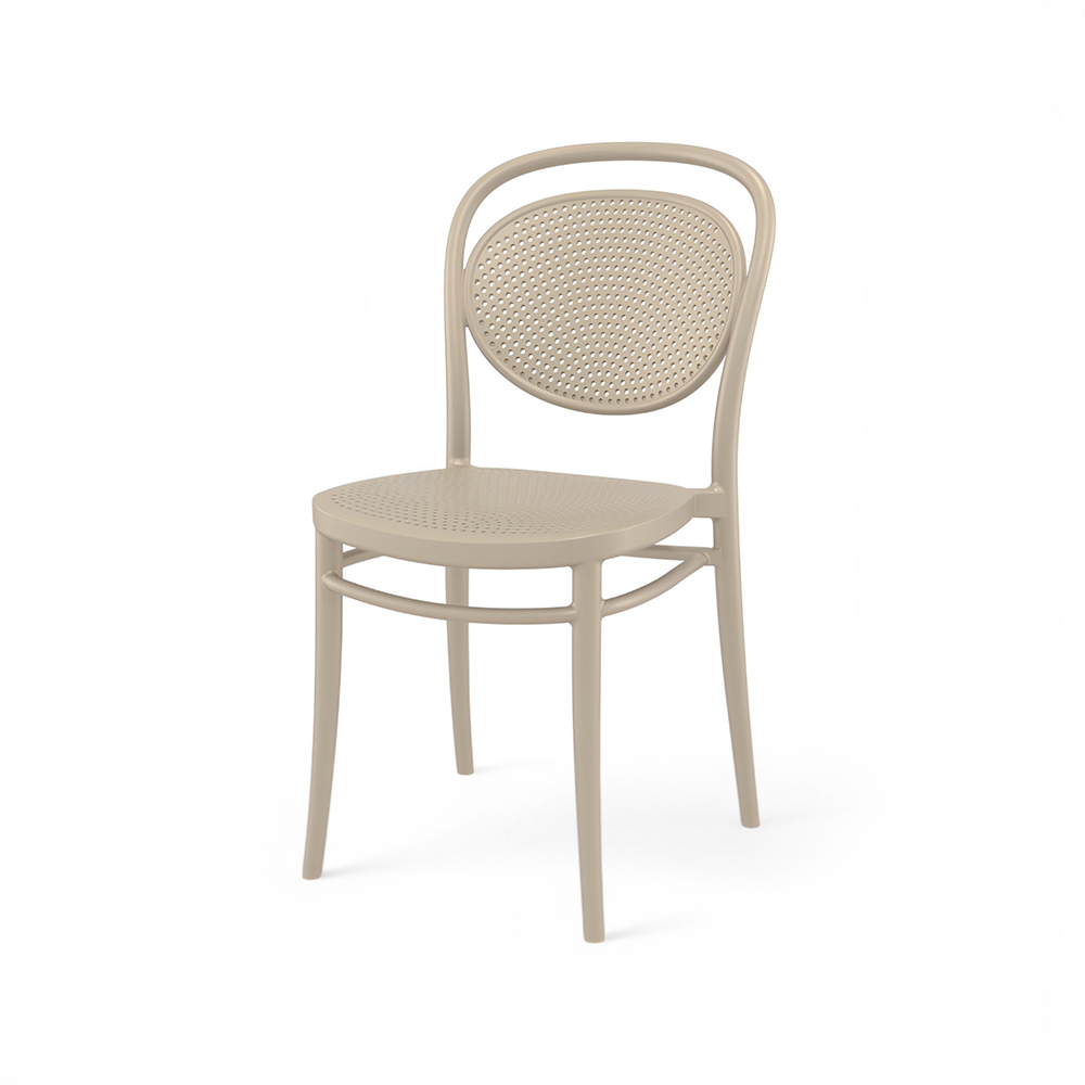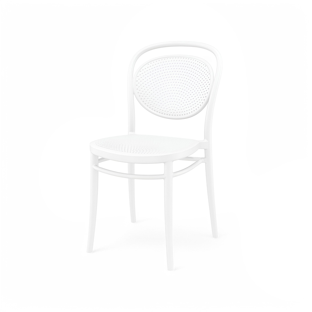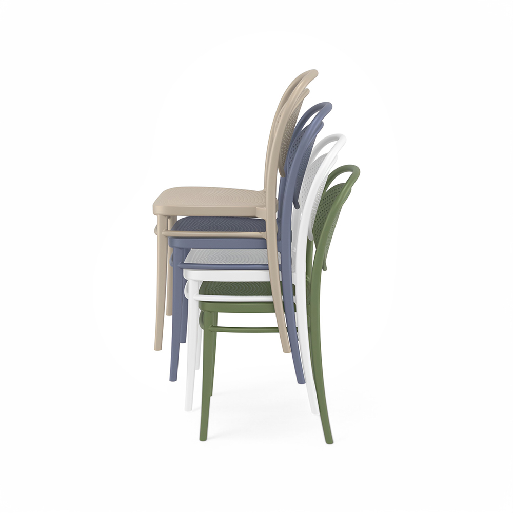 MARCEL stacking chair is produced with a single injection of polypropylene reinforced with glass fibre obtained by means of the latest generation of air moulding technology with neutral tones. For indoor and outdoor use.