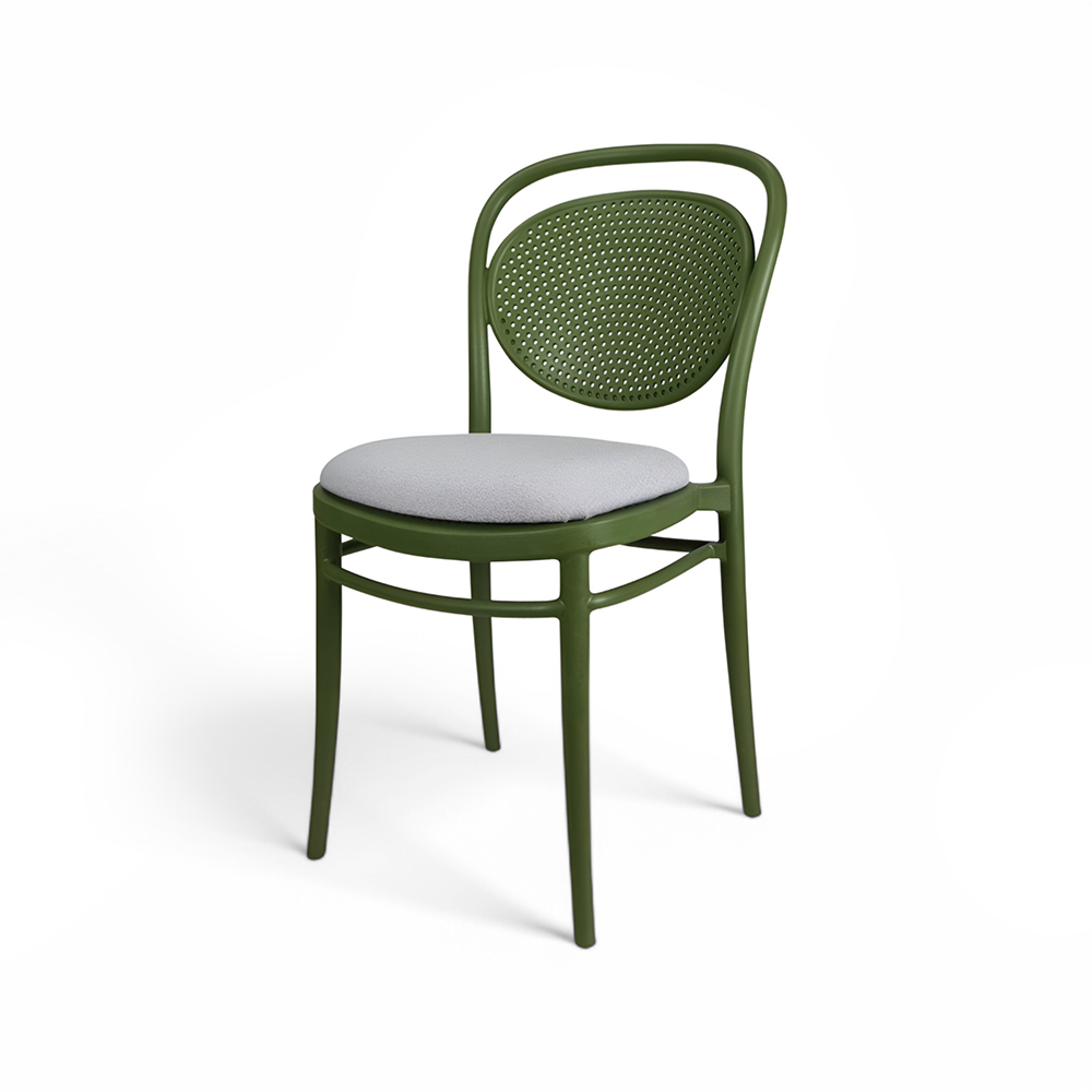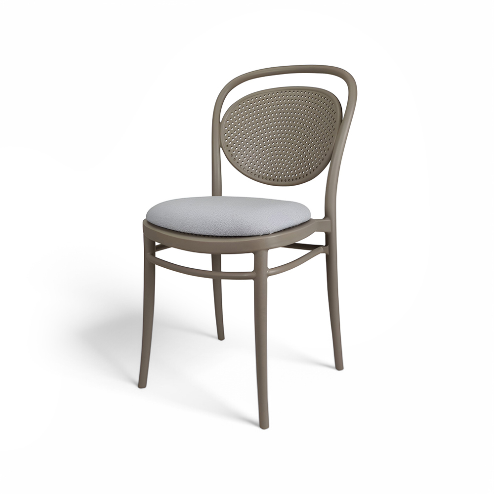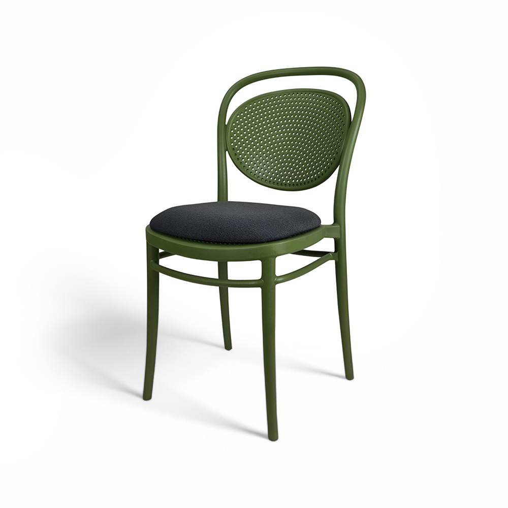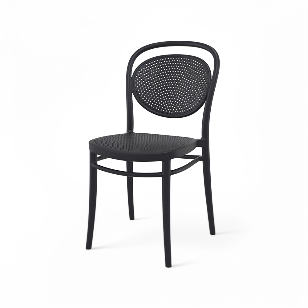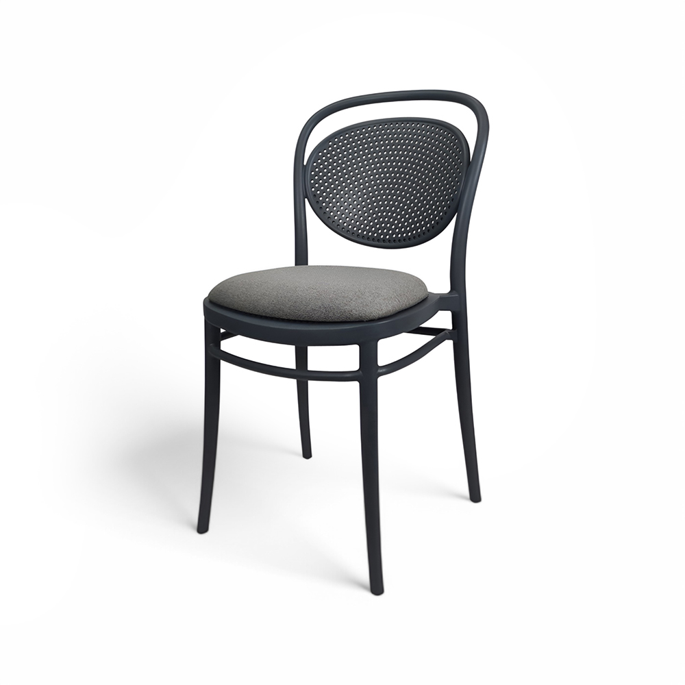 MARCEL stacking chair is produced with a single injection of polypropylene reinforced with glass fibre obtained by means of the latest generation of air moulding technology with neutral tones. For indoor and outdoor use.