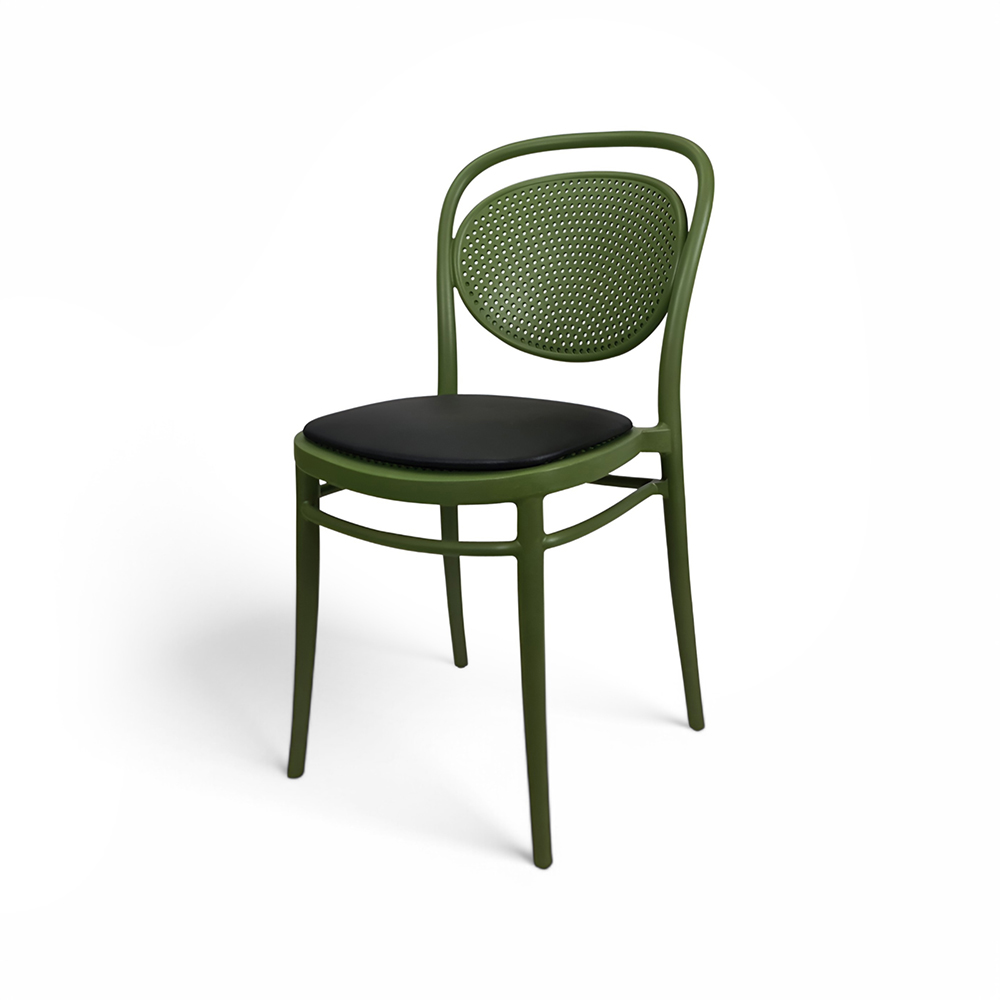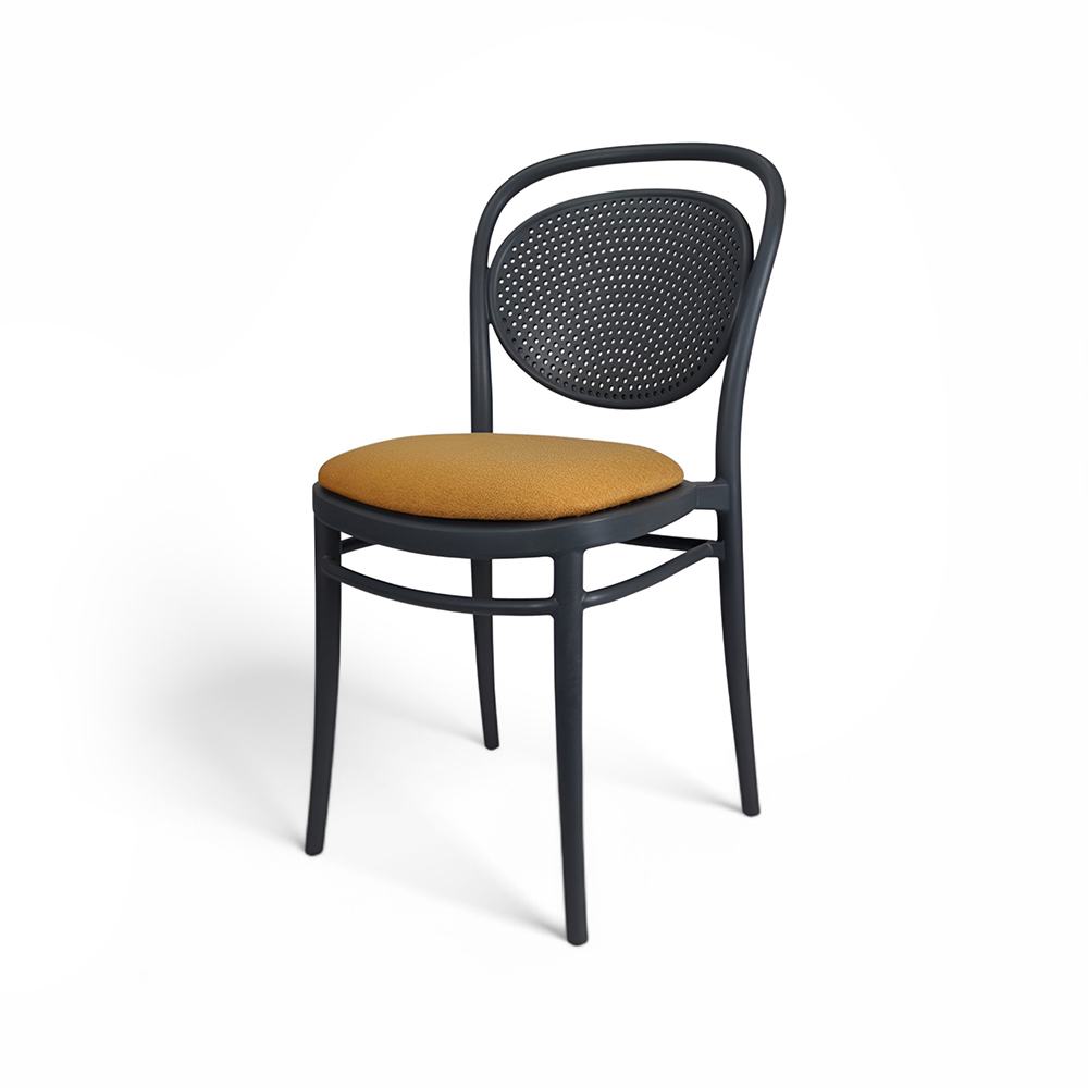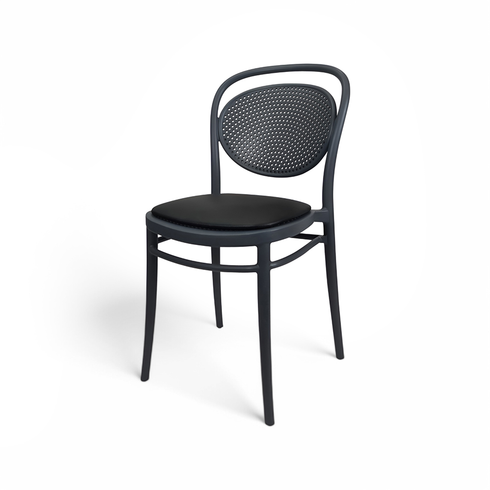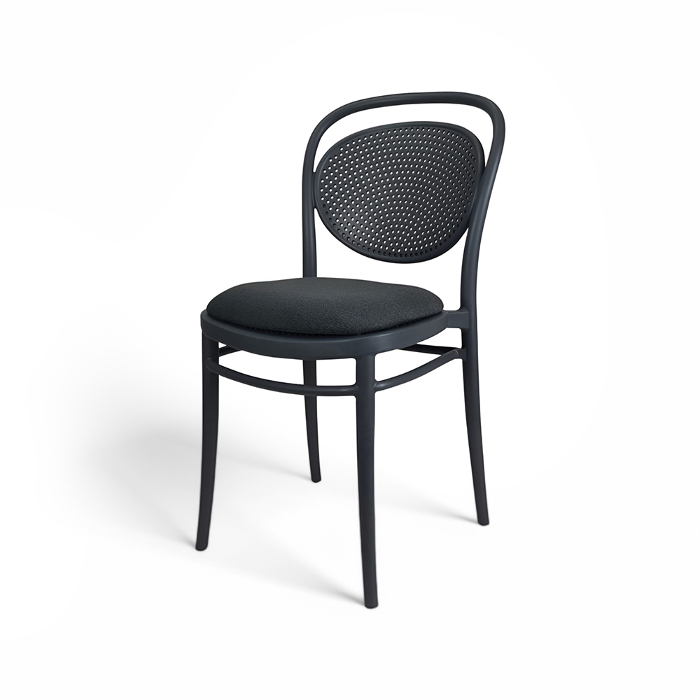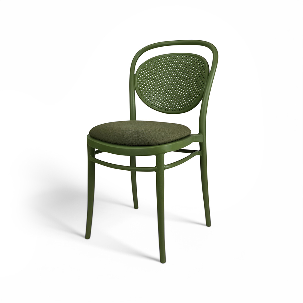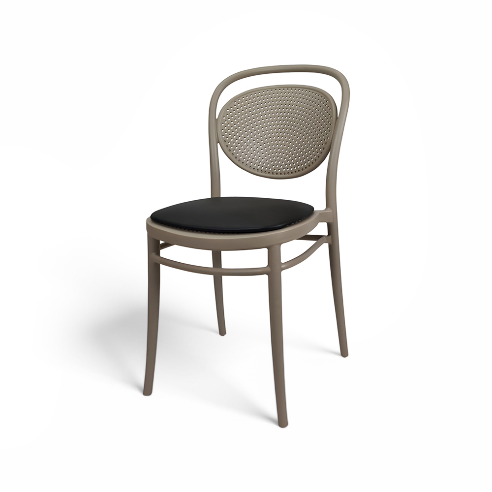 MARCEL stacking chair is produced with a single injection of polypropylene reinforced with glass fibre obtained by means of the latest generation of air moulding technology with neutral tones. For indoor and outdoor use.