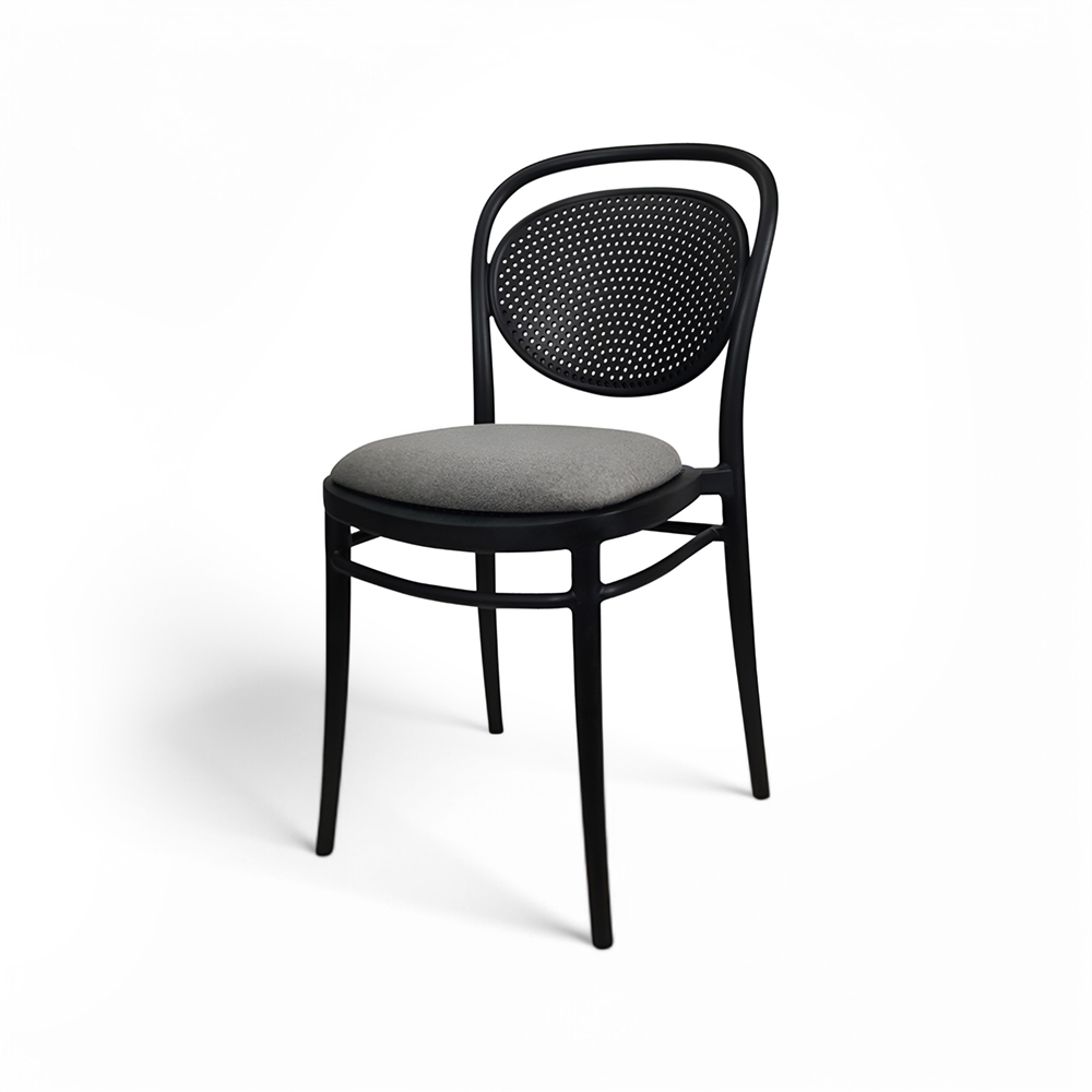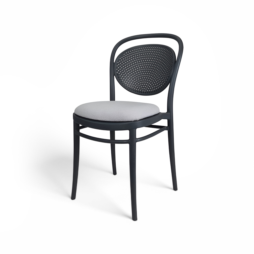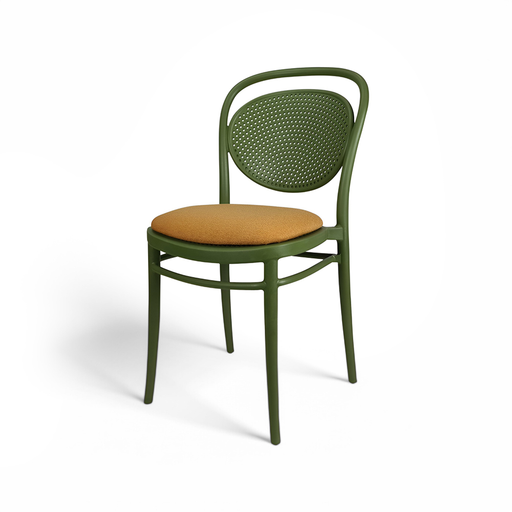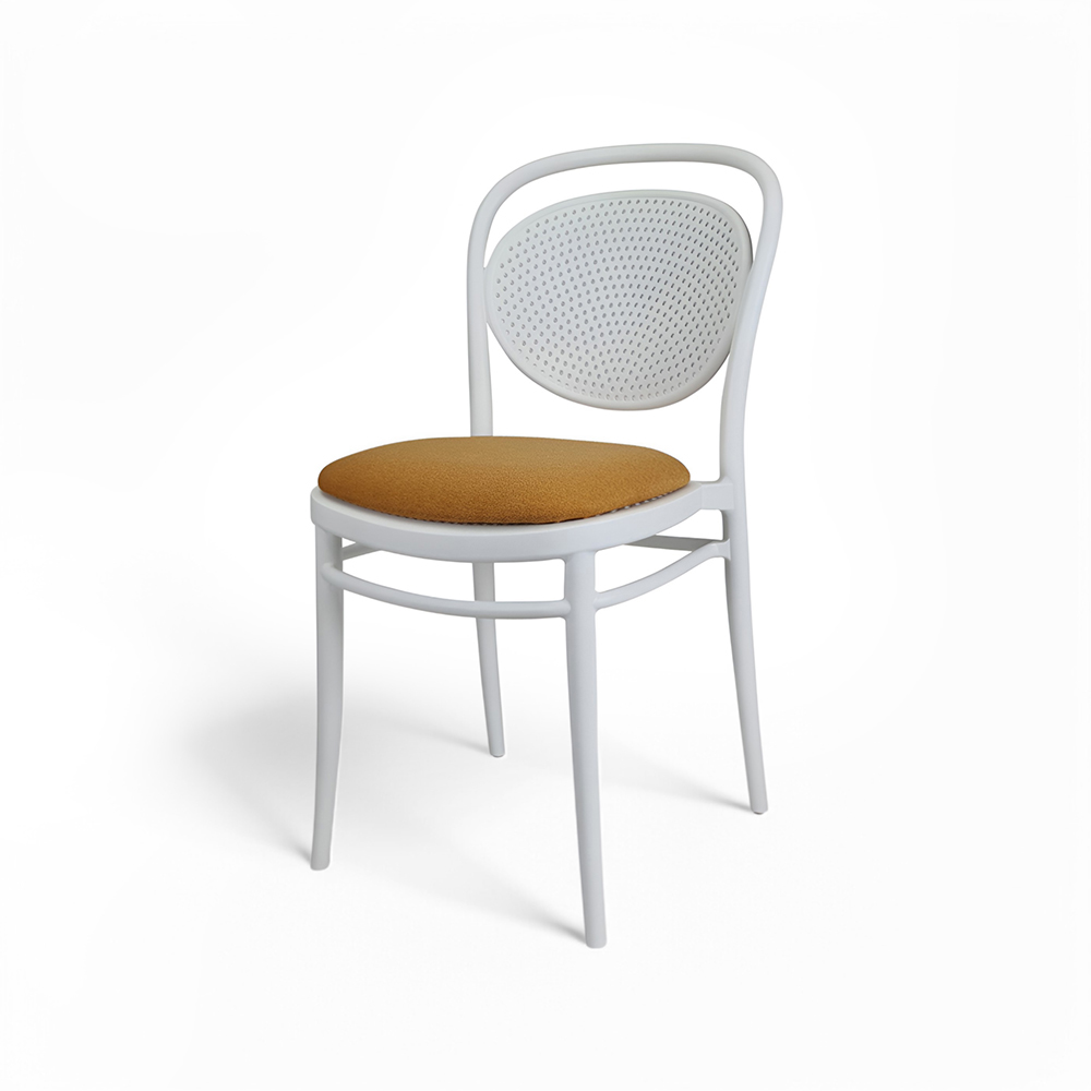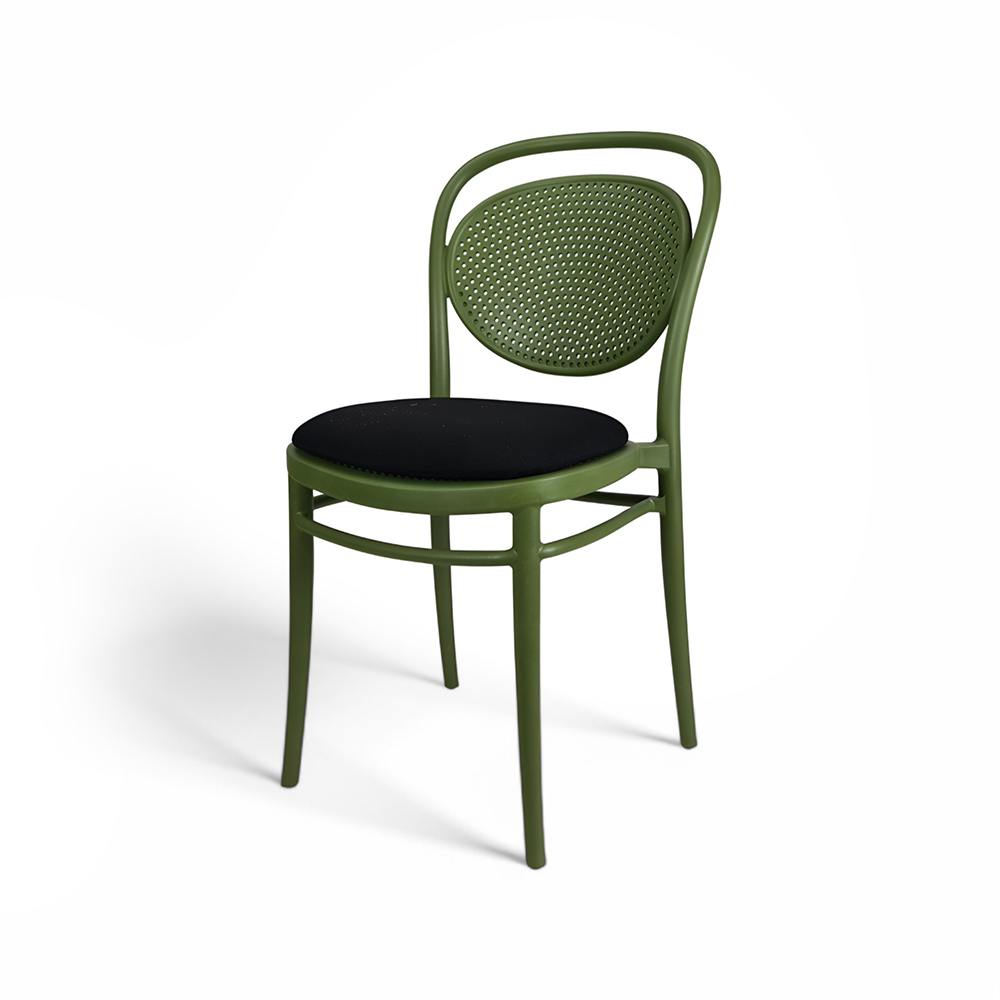 MARCEL stacking chair is produced with a single injection of polypropylene reinforced with glass fibre obtained by means of the latest generation of air moulding technology with neutral tones. For indoor and outdoor use.