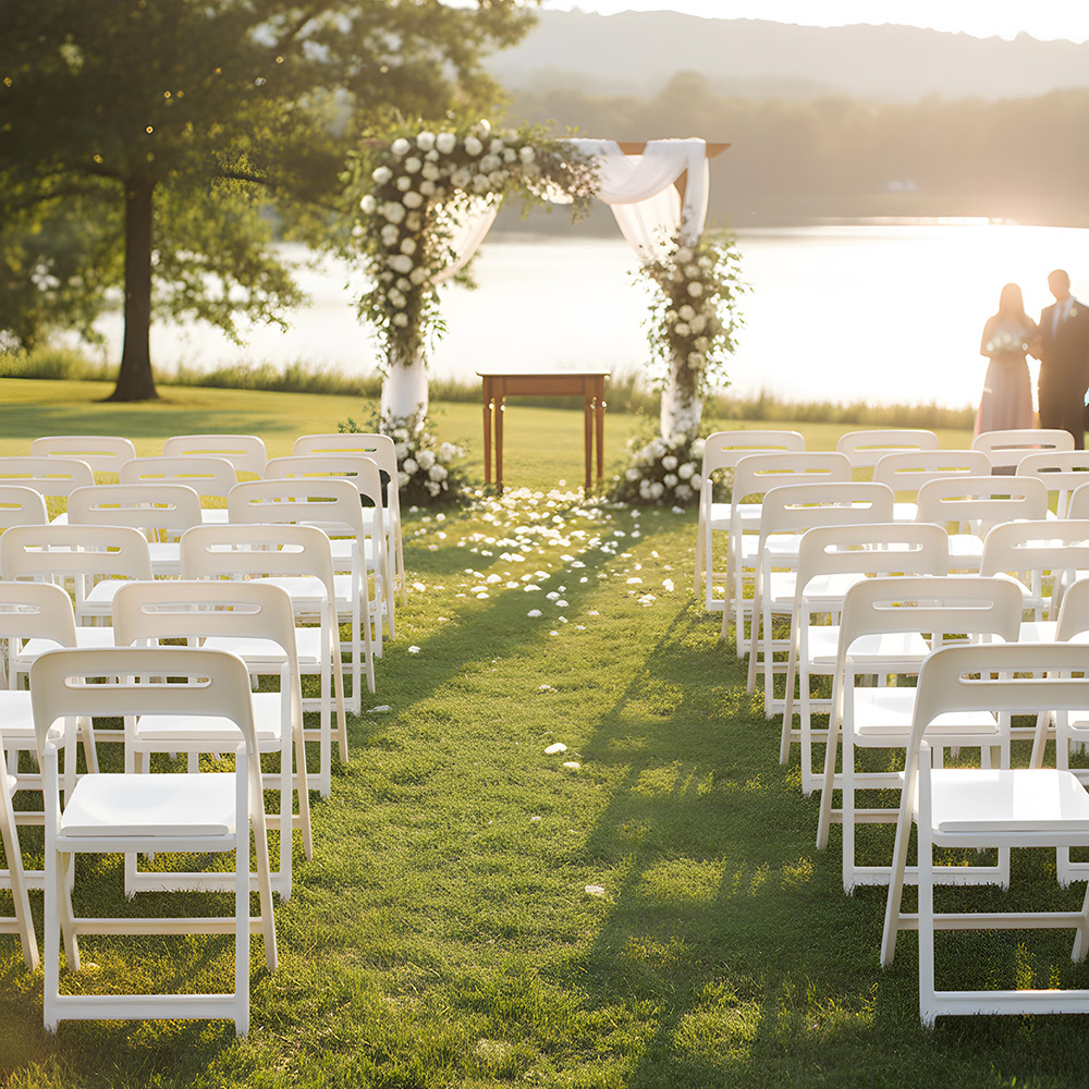enjoy the event without being distracted. It is simple to set up and move from place to place in a purpose build high volume cart. The ideal wedding chair in white, the black variant opens options for uses in community halls, school, churches, and multiuser gathering places.